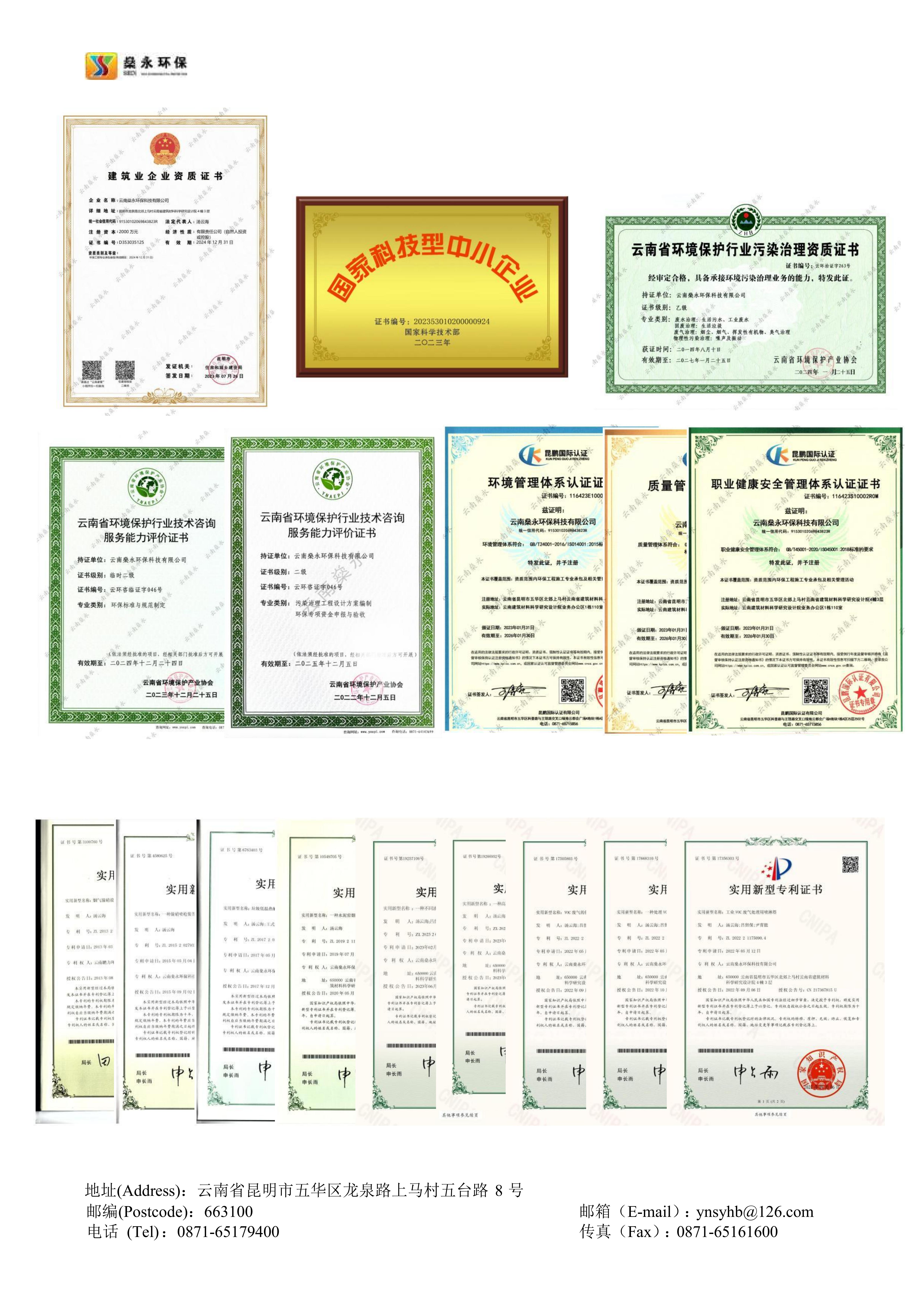 燊永公司堅(jiān)持“創(chuàng)新、協(xié)作、共贏”的價(jià)值觀,以“專(zhuān)業(yè)、專(zhuān)心、專(zhuān)注”為服務(wù)理念,以“求實(shí)、求是、求精”為質(zhì)量宗旨,為客戶(hù)提供優(yōu)質(zhì)、高效、貼心的服務(wù)。公司獲得國(guó)家專(zhuān)業(yè)部門(mén)頒發(fā)的《環(huán)境工程專(zhuān)業(yè)承包三級(jí)》資質(zhì)、《污染治理乙級(jí)》資質(zhì)、《企業(yè)信用等級(jí)A級(jí)》證書(shū)、《云南省科技型中小企業(yè)》認(rèn)定證書(shū)、《ISO9001/GBT50430質(zhì)量管理體系》證書(shū)、《ISO14001環(huán)境管理體系》證書(shū)、《ISO45001職業(yè)健康安全管理體系》證書(shū)等多項(xiàng)榮譽(yù)和多項(xiàng)的專(zhuān)利技術(shù)。