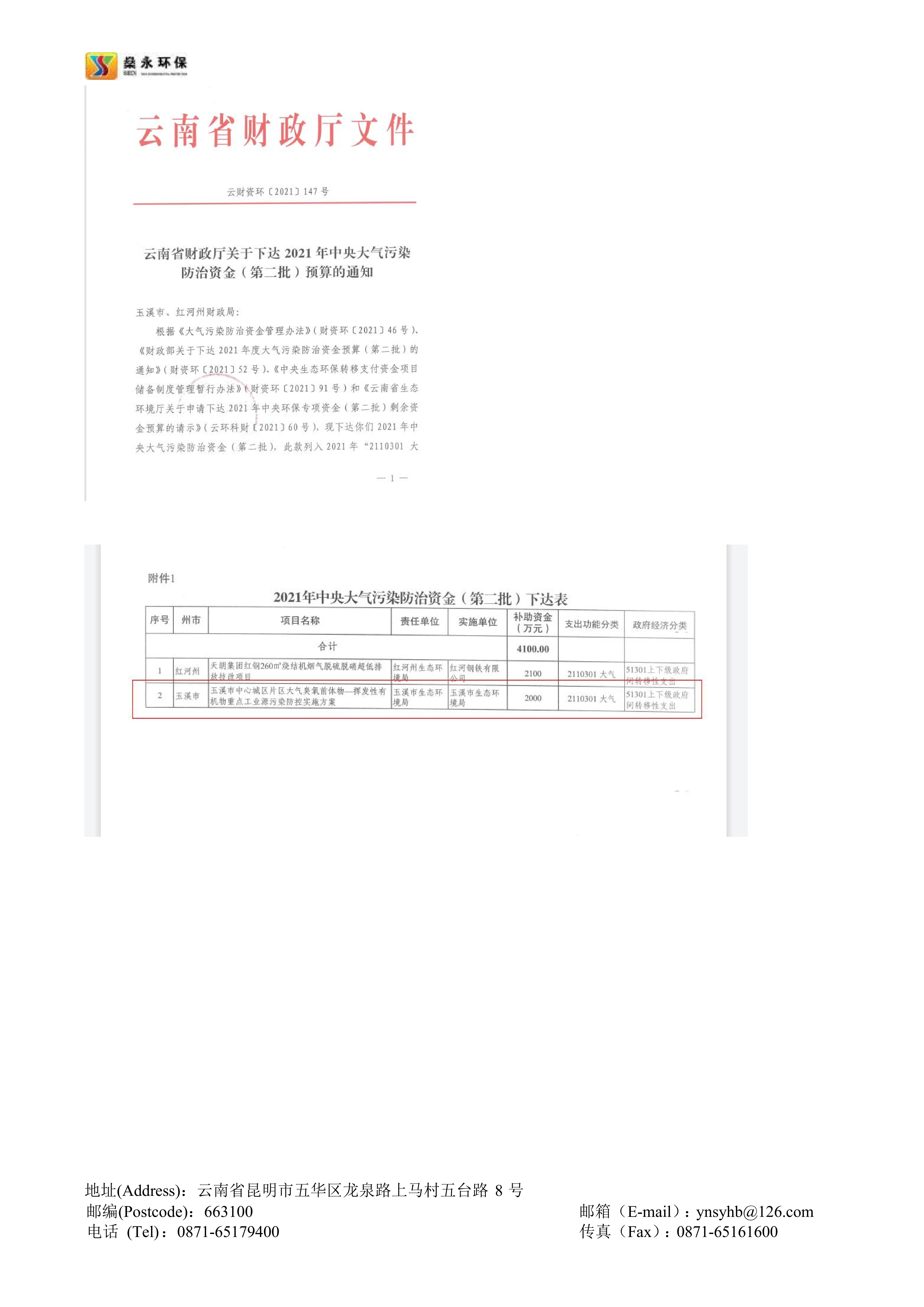 截止2023年10月,公司幫助云南省多個(gè)行業(yè)企業(yè)成功申報(bào)的中央大氣污染防治資金已入庫(kù)項(xiàng)目共計(jì)20余個(gè),申報(bào)項(xiàng)目已獲批總資金近一億余元。公司承接的云南省內(nèi)中央大氣污染防治資金申報(bào)項(xiàng)目申報(bào)成功率高,成效顯著,服務(wù)細(xì)致高效,在云南省中央大氣污染防治資金申報(bào)領(lǐng)域具有豐富的經(jīng)驗(yàn)。
